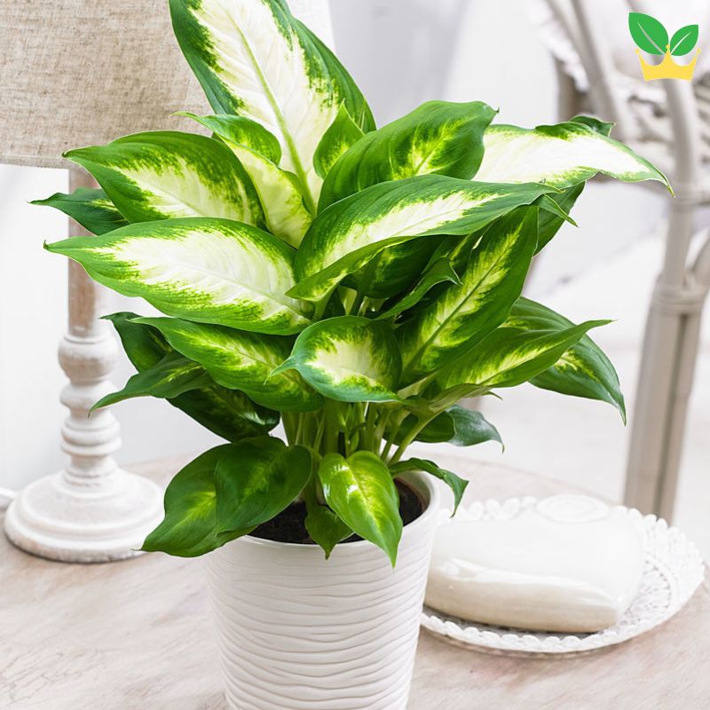 Cây Ngọc Ngân (Dieffenbachia seguine) với tán lá xanh tươi, rộng lớn, không chỉ giúp không gian trở nên mát mẻ mà còn cân bằng năng lượng phong thủy, tạo cảm giác thư giãn và dễ chịu. Cây thích hợp với ánh sáng tán xạ và cần đất ẩm, thoát nước tốt để phát triển. Trong phong thủy, Ngọc Ngân mang ý nghĩa đại diện cho tài lộc và sự bình an, là biểu tượng của sự thịnh vượng và may mắn trong ngôi nhà bạn.
