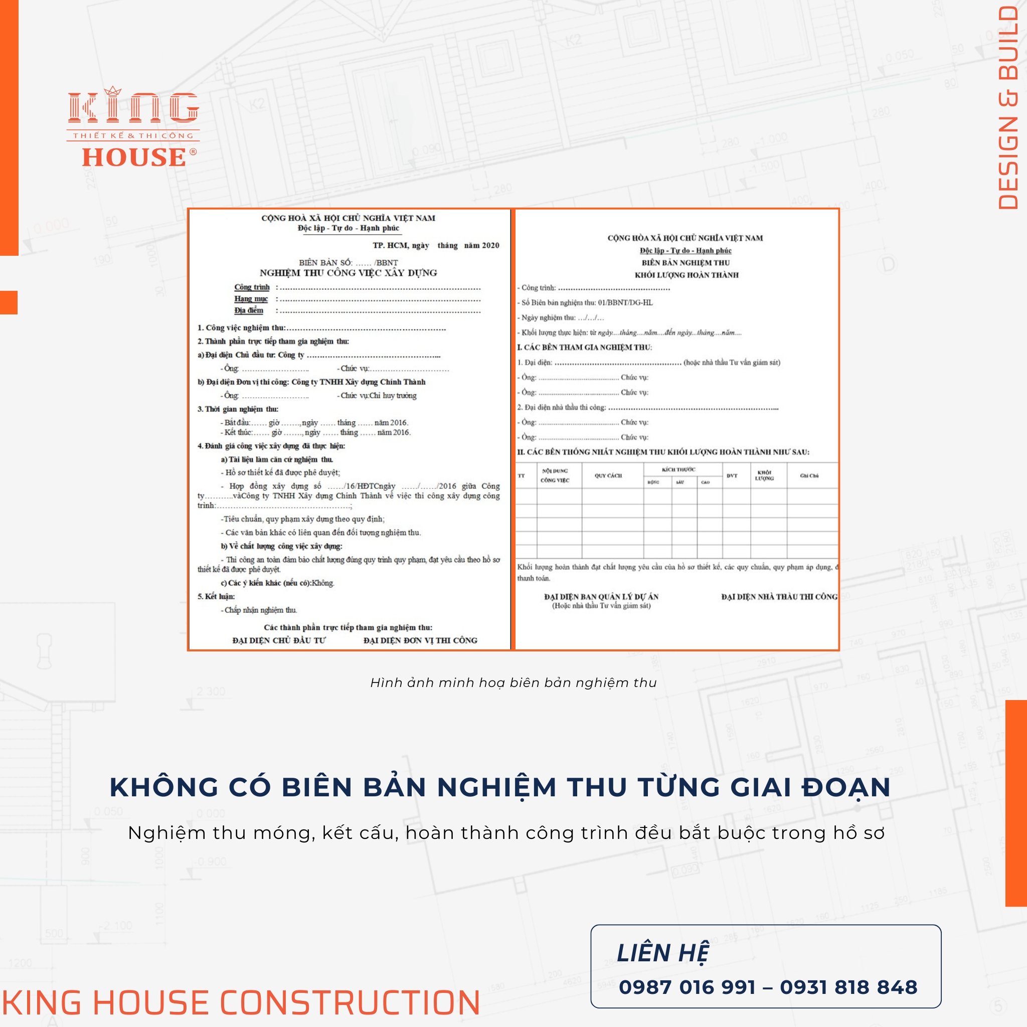 Vì vậy, trong suốt quá trình thi công, gia chủ nên phối hợp với đơn vị thi công để thực hiện nghiệm thu đúng quy trình và lưu trữ đầy đủ hồ sơ.