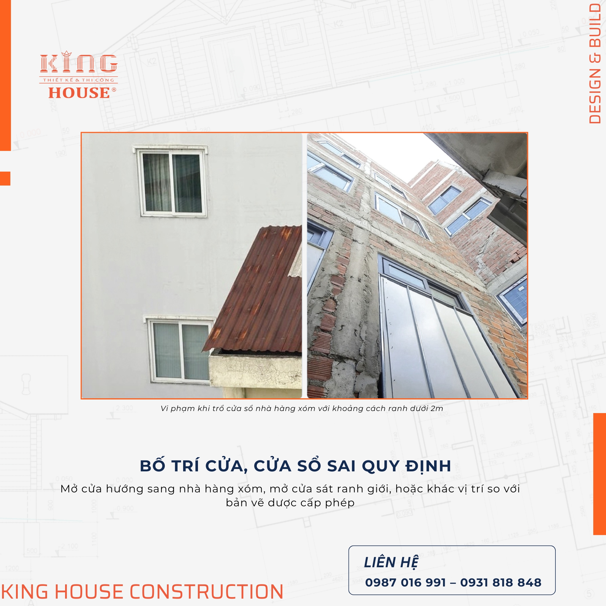 Một lỗi khá phổ biến trong xây dựng nhà phố là bố trí cửa sổ hoặc cửa mở không đúng quy định.