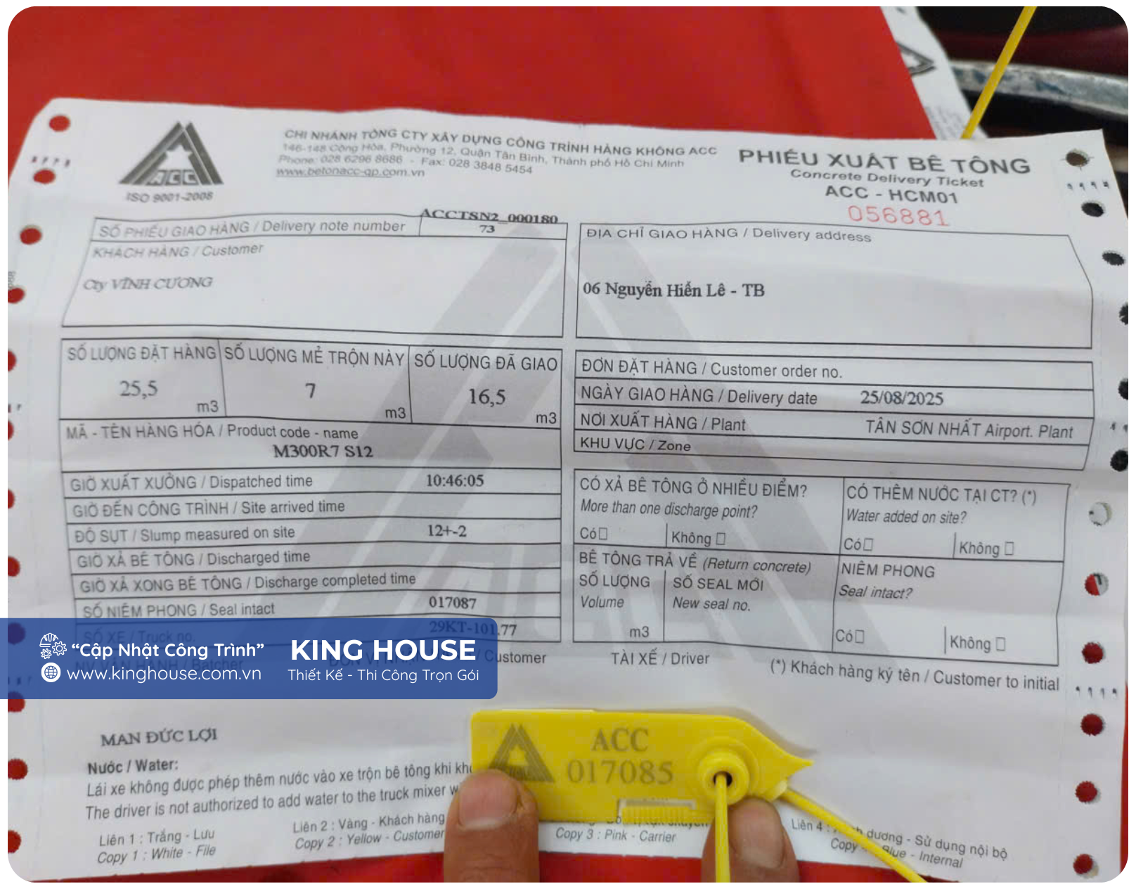 Trước khi nhận bê tông, gia chủ cần yêu cầu kiểm tra phiếu giao nhận. Các thông tin cần kiểm tra bao gồm: