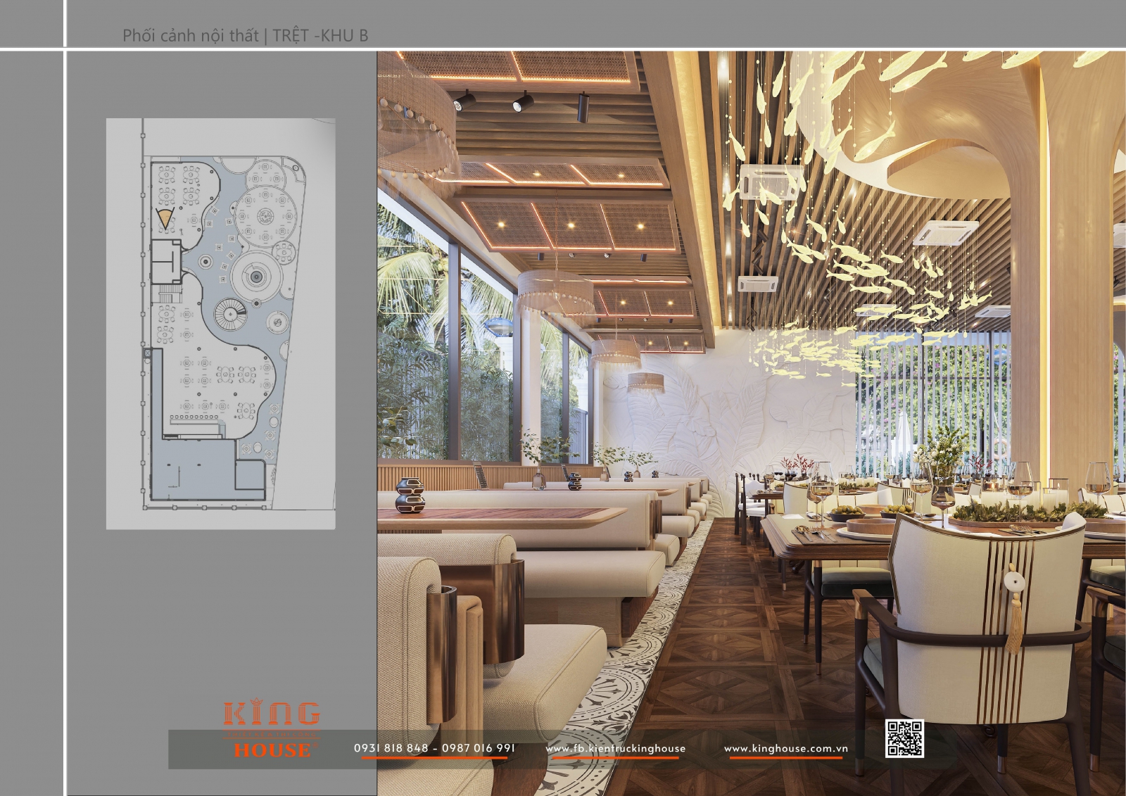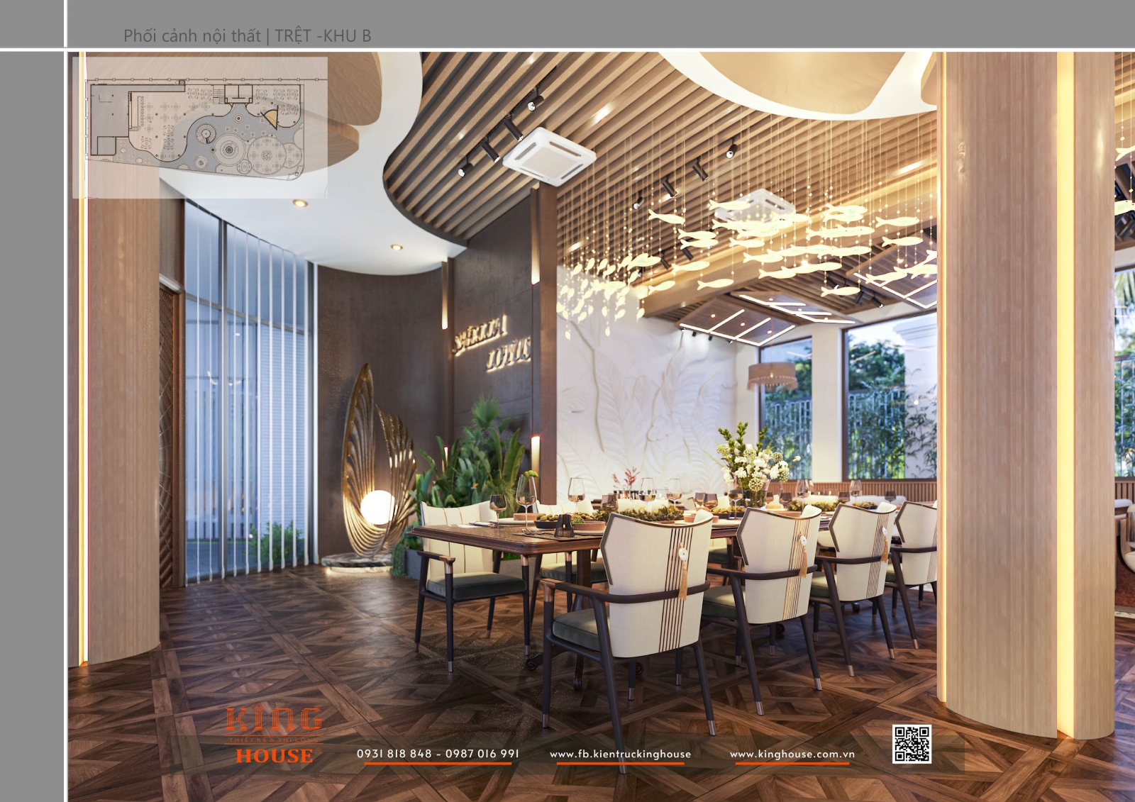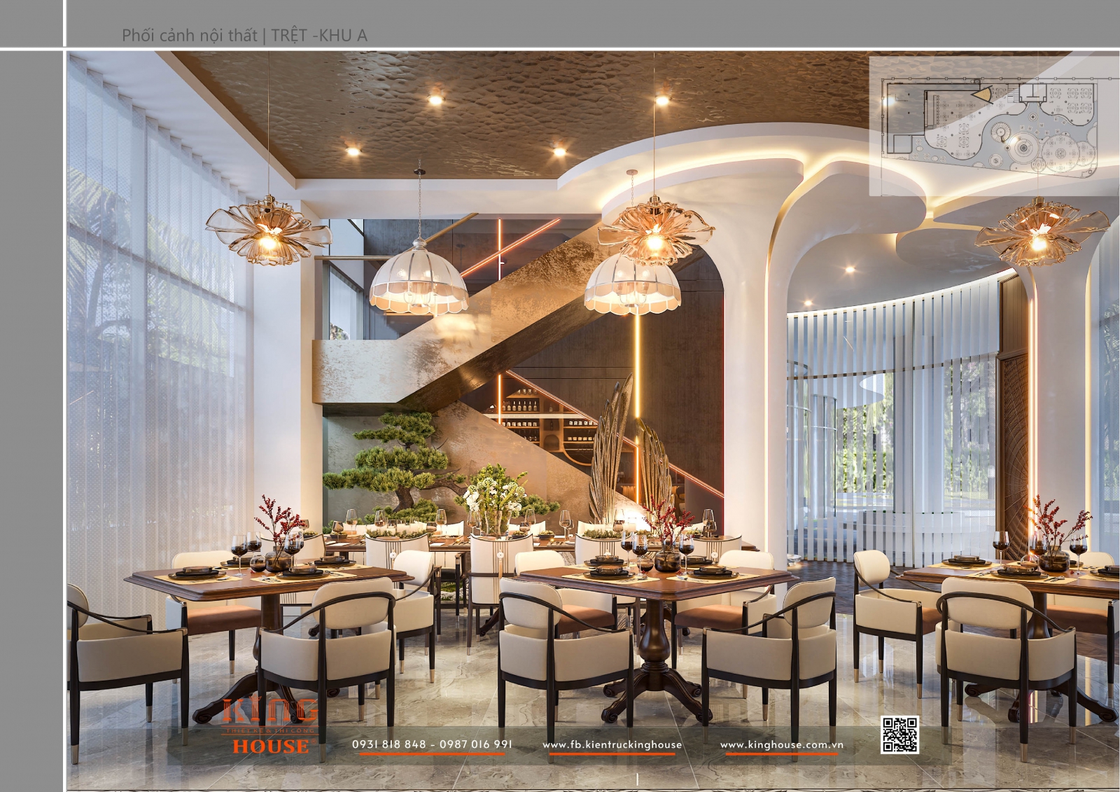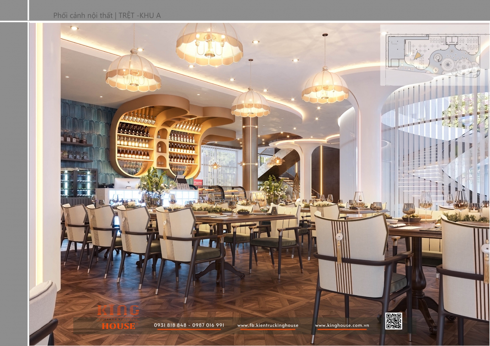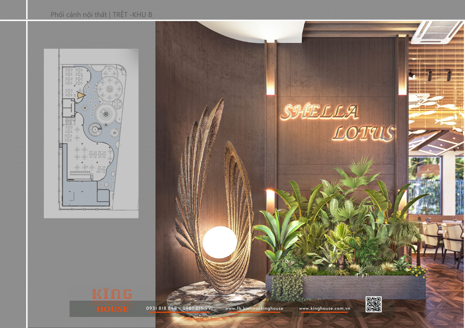 Với phương châm “Kiến tạo không gian sống bền vững và đầy cảm hứng”, King House mang đến giải pháp thiết kế – thi công trọn gói, kết hợp yếu tố thẩm mỹ và công năng. Shella Restaurant chính là minh chứng cho khát vọng ấy: một công trình hài hòa, sang trọng nhưng vẫn giữ được sự gần gũi, tự nhiên.