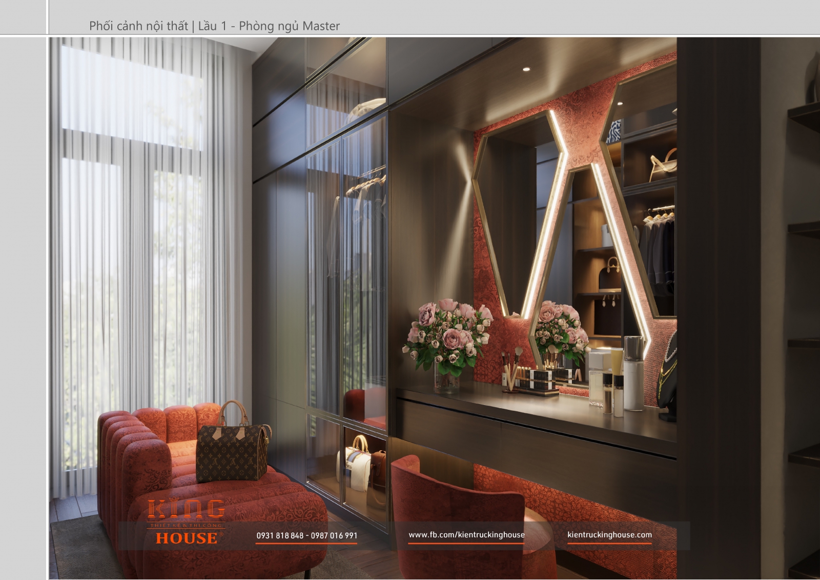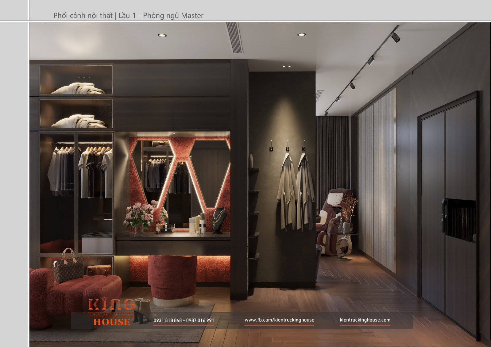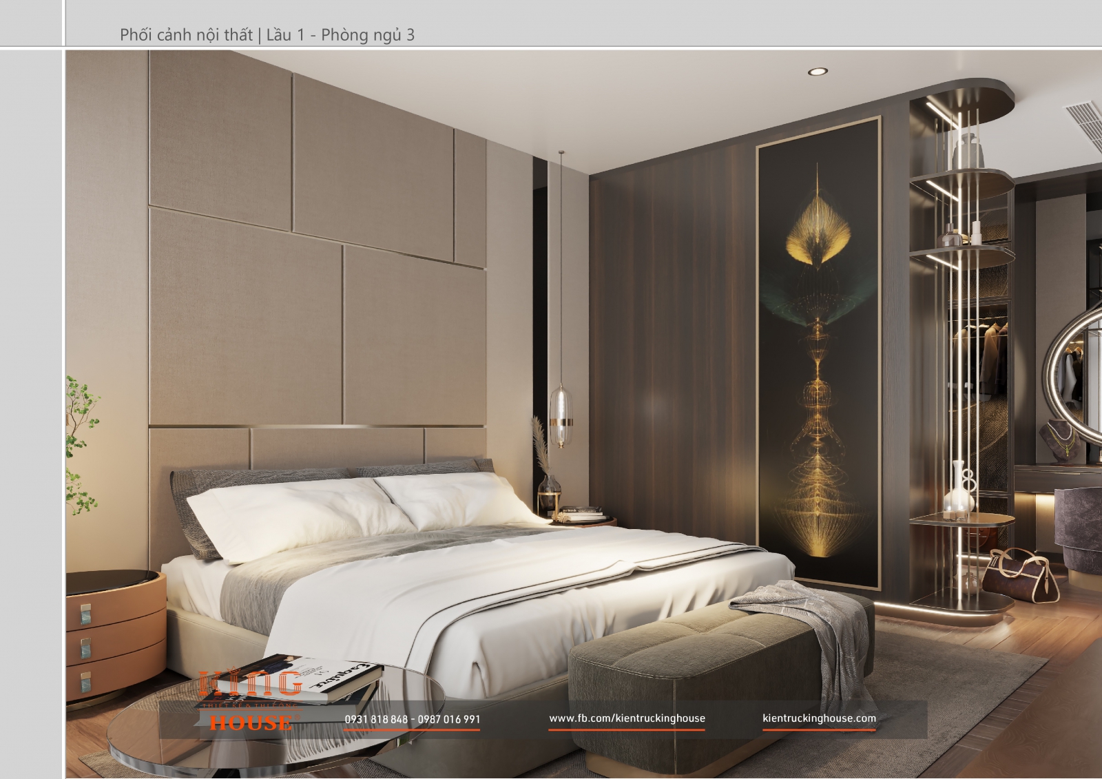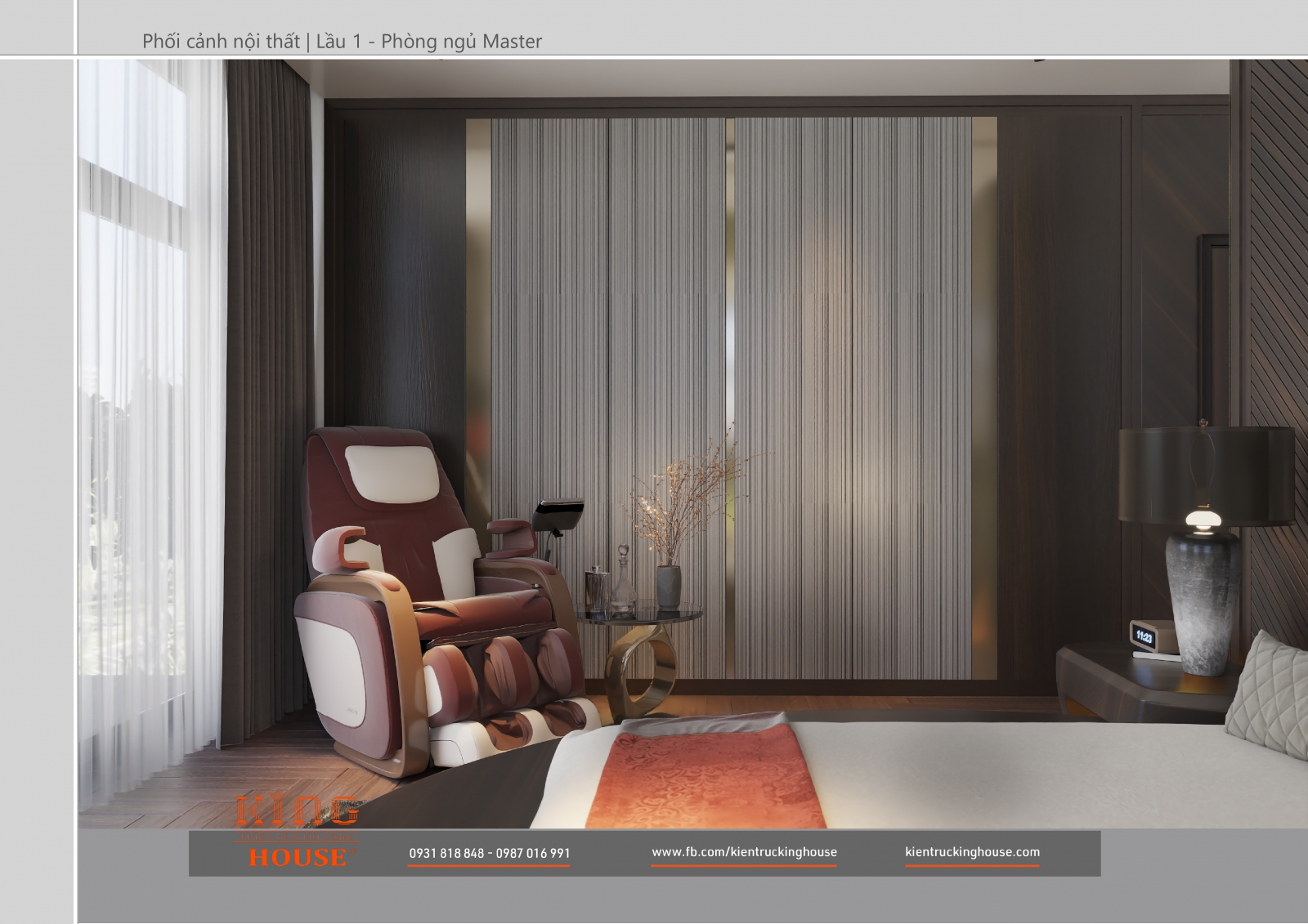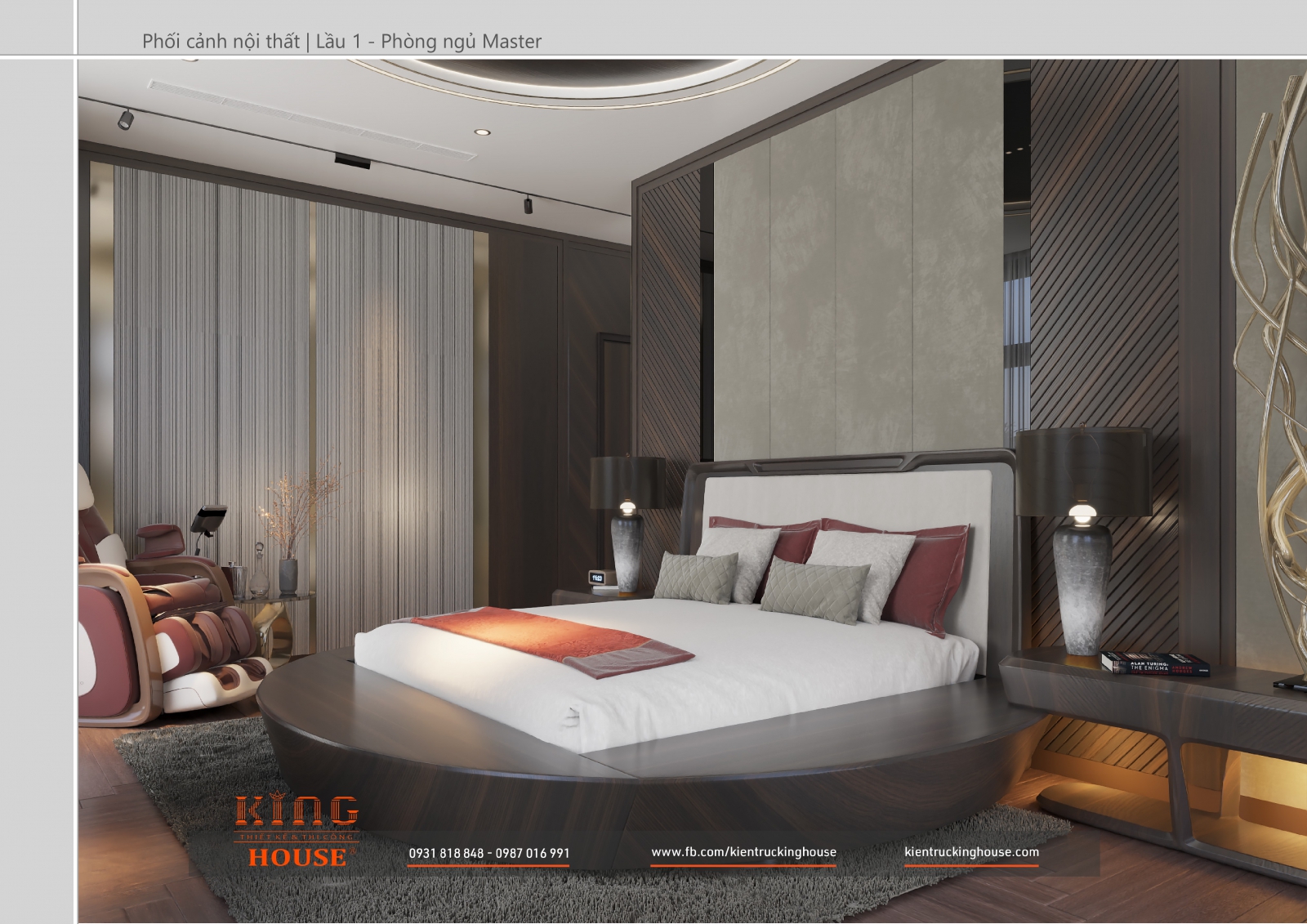 Từ kiến trúc công trình tới thiết kế đều tuân thủ nghiêm ngặt phong cách hiện đại. Đó là hướng tới sự tối giản, tiện nghi với công năng vượt trội và giá trị lâu dài về mặt thời gian. Trong công trình các KTS KING HOUSE lược bỏ hết chi tiết phức tạp trong kiến trúc truyền thống, kết hợp khéo léo các mảng khối bê tông đua ra, giật vào tạo nên các khoảng không lý tưởng cho gia đình chủ đầu tư.