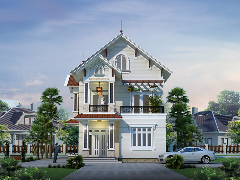Mẫu biệt thự nhỏ sân vườn theo phong cách châu Âu thường nổi bật với bố cục đối xứng, đường nét tinh tế và sự kết hợp hài hòa giữa kiến trúc và cảnh quan. Không gian thường được điểm xuyết bằng đài phun nước, giàn hoa, chòi nghỉ hoặc khu vườn rực rỡ sắc hoa, mang đến vẻ đẹp sang trọng nhưng vẫn đầy lãng mạn.